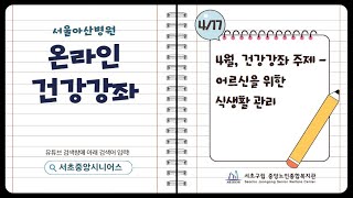 [간호보건] 서울아산병원 온라인 건강강좌 : 4월. 어르신을 위한 식생활 관리