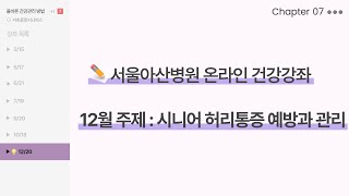 [간호보건] 서울아산병원 온라인건강강좌 - 12월, 시니어 허리통증 예방과 관리